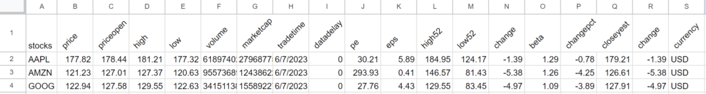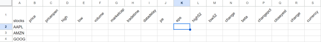 Step 4: Step up the spreadsheet to fetch multiple values for multiple stocks
